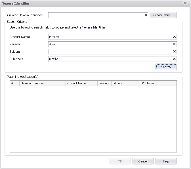 3. Proceed with the steps in Performing a Manual Search for a Flexera Identifier, and if a Flexera Identifier is not found, proceed with the steps in Creating Local Flexera Identifier Entries for Internal or Repackaged Applications.