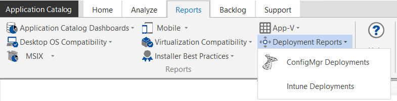 The Intune Deployments Report on the Reports tab lists the packages in the Application Catalog which have been published to Intune.
